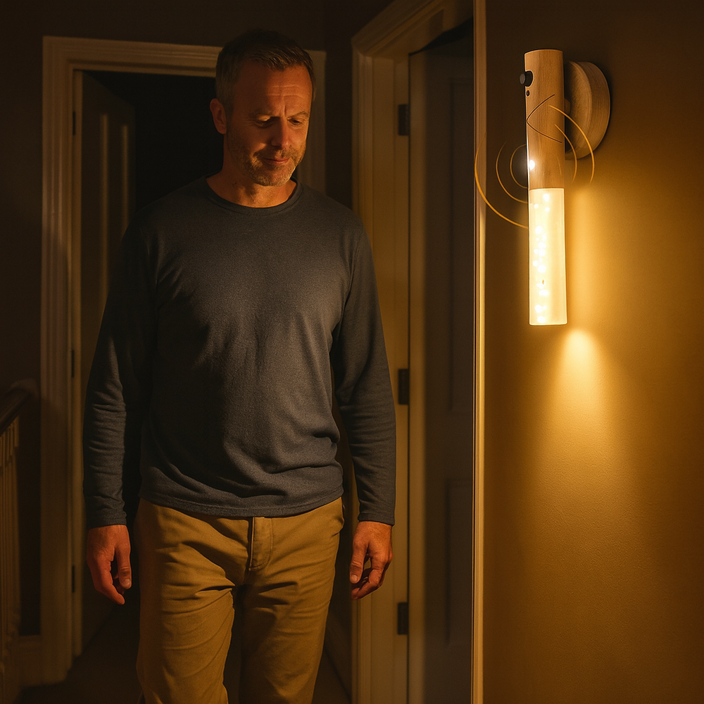 Automatically lights your path in darkness, then switches off to save battery. Never fumble for switches or disturb sleeping family again